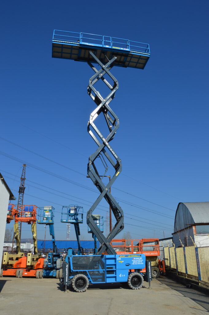 Az összes általunk bérbeadásra vagy értékesítésre kínált ollós emelő önjáró, ami gyors és hatékony munkavégzést tesz lehetővé a magasban, mivel felemelt állapotban is tudnak haladni, nem kell összecsukni a gépet. Továbbá biztonságos munkavégzést tesznek lehetővé, mert az emelőgép halad és emel, és nem a homlokzati állványon kell fel- lemászni.